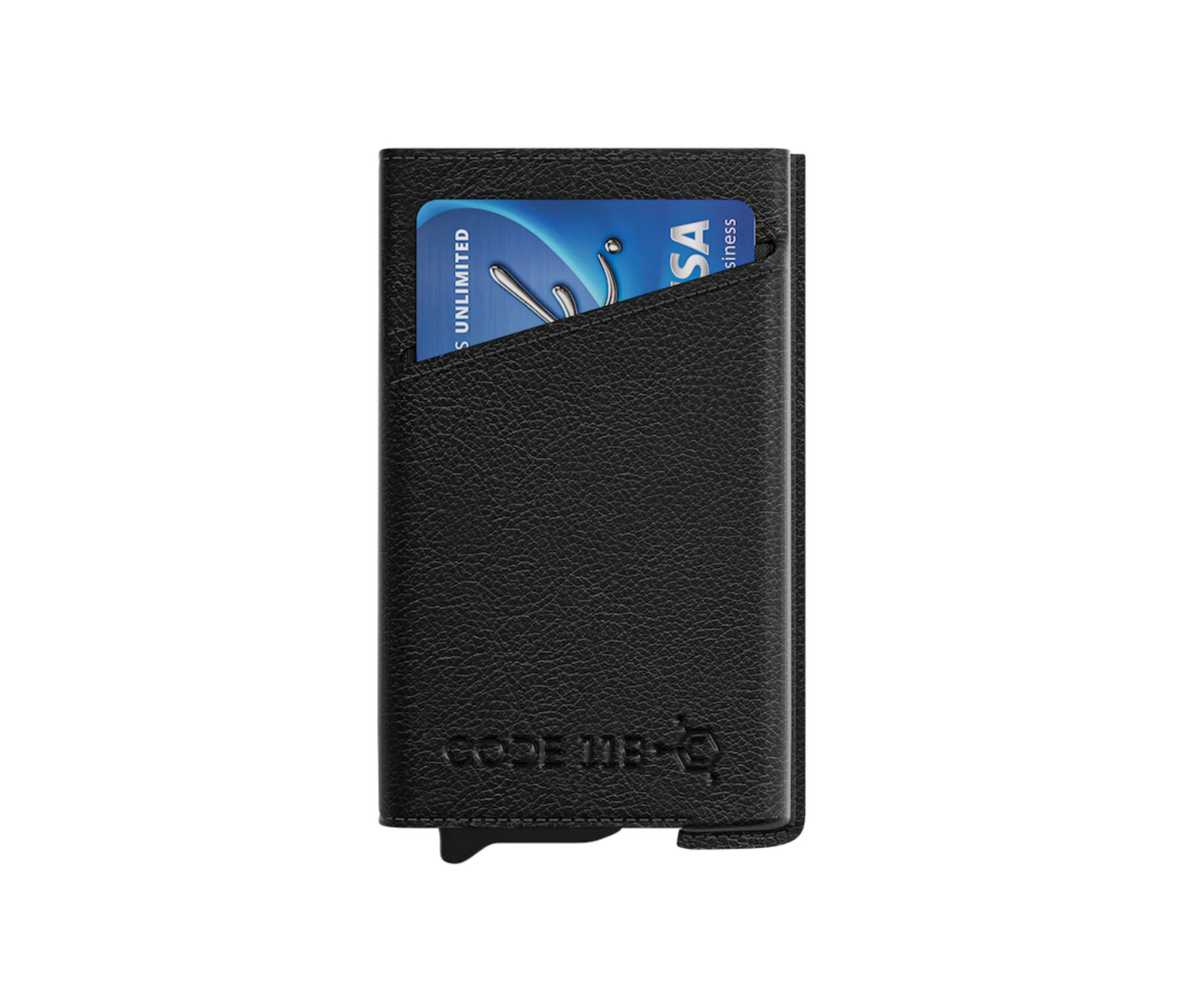 A premium leather carrying case designed for our flagship CODE 118 Wallet. Simply slide your CODE 118 Wallet into this sleek yet durable leather sleeve, and instantly expand its storage by 4 additional cards. You can also store and conceal your cash in each pocket. For anyone who wants to blend classic style with modern utility.